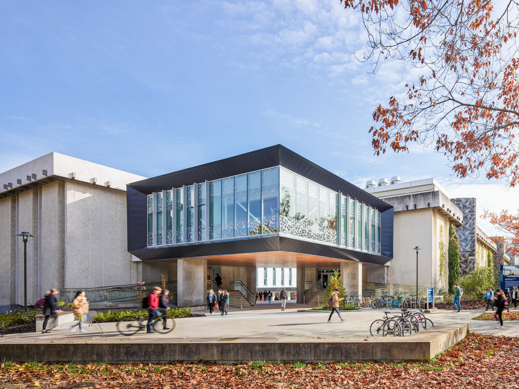The East wing is a brand new 6 level structure that contains the new lecture theatre. While the North wing is classified as a renovation, the 6 level structure was stripped back down to the core with significant structural upgrades (shear walls, transfer beams & associated footings, expansion joints, etc.) making this essentially a full new installation.